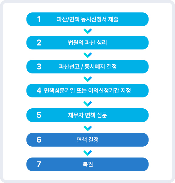 파산은 원칙적으로 채무자의 재산을 환가해 변제하는 절차이고, 파산절차가 종결되면 면책을 신청해 채무를 변제할 책임을 면제받을 수 있는 제도로서, 채무를 장래 일반적 계속적으로 변제할 수 없는 사람들이 이용하는 제도입니다.